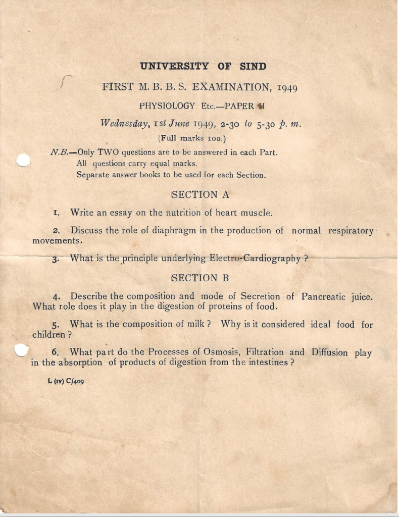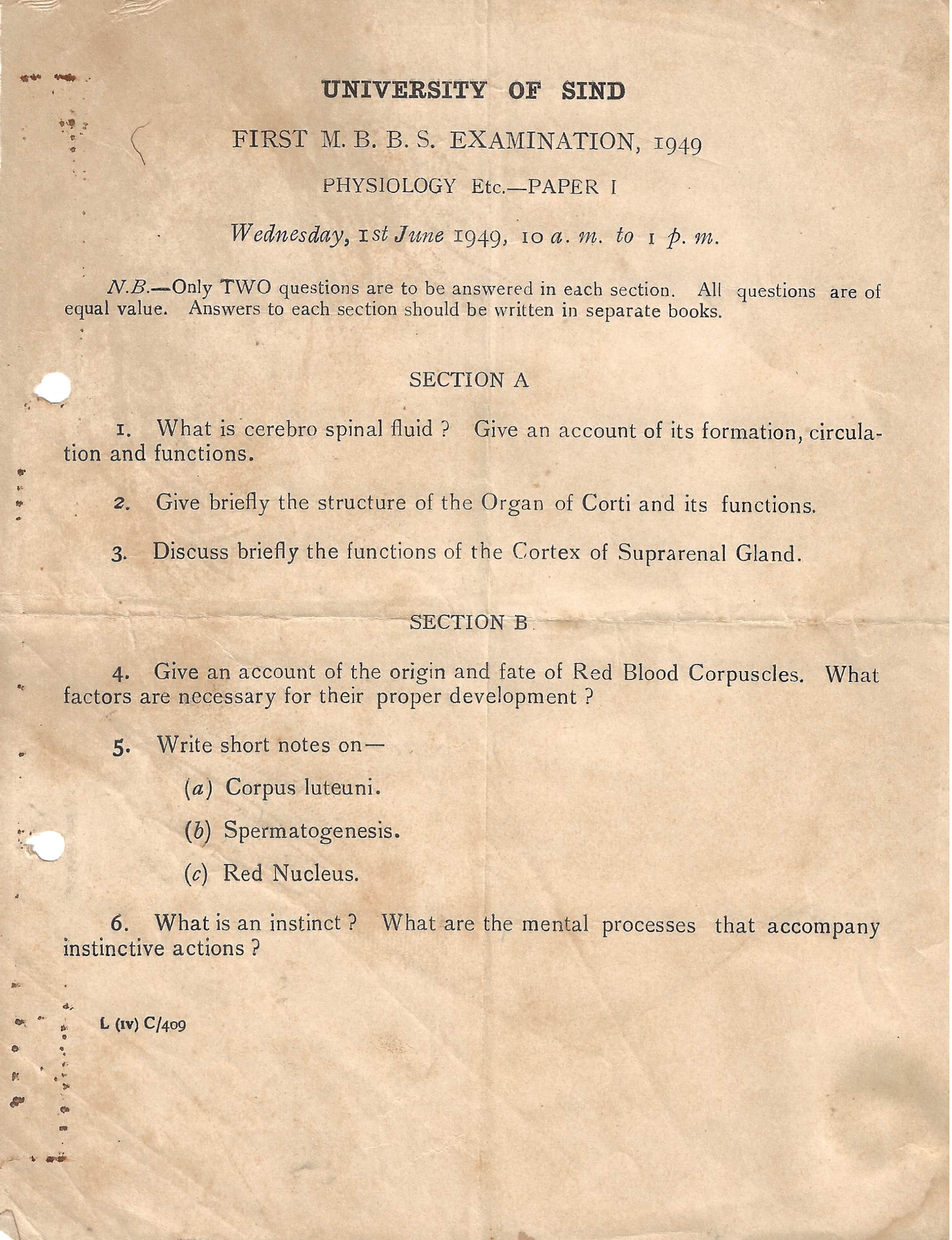 The Oldest Surviving MBBS Examination Papers (1949)**